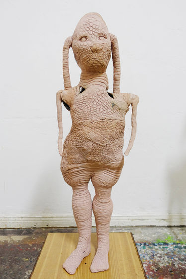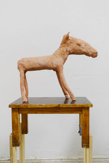 The figurative ceramic work of Susanne Ring are in this duo presentation thus combined with Hundertmarks narrative scenes. Ring, also working in Berlin, creates sculptural assemblages that traverse and collapse the history of ceramic craft. She mixes her ceramics with wood, stone, glass and textiles to create expressive heads on, amorphous bodies. The sculptures are complex and personal snapshots of interpersonal encounters, events, experiences. The evocative sculptures reflect and project what is remembered, observed, felt and recognized in the body and by the body.